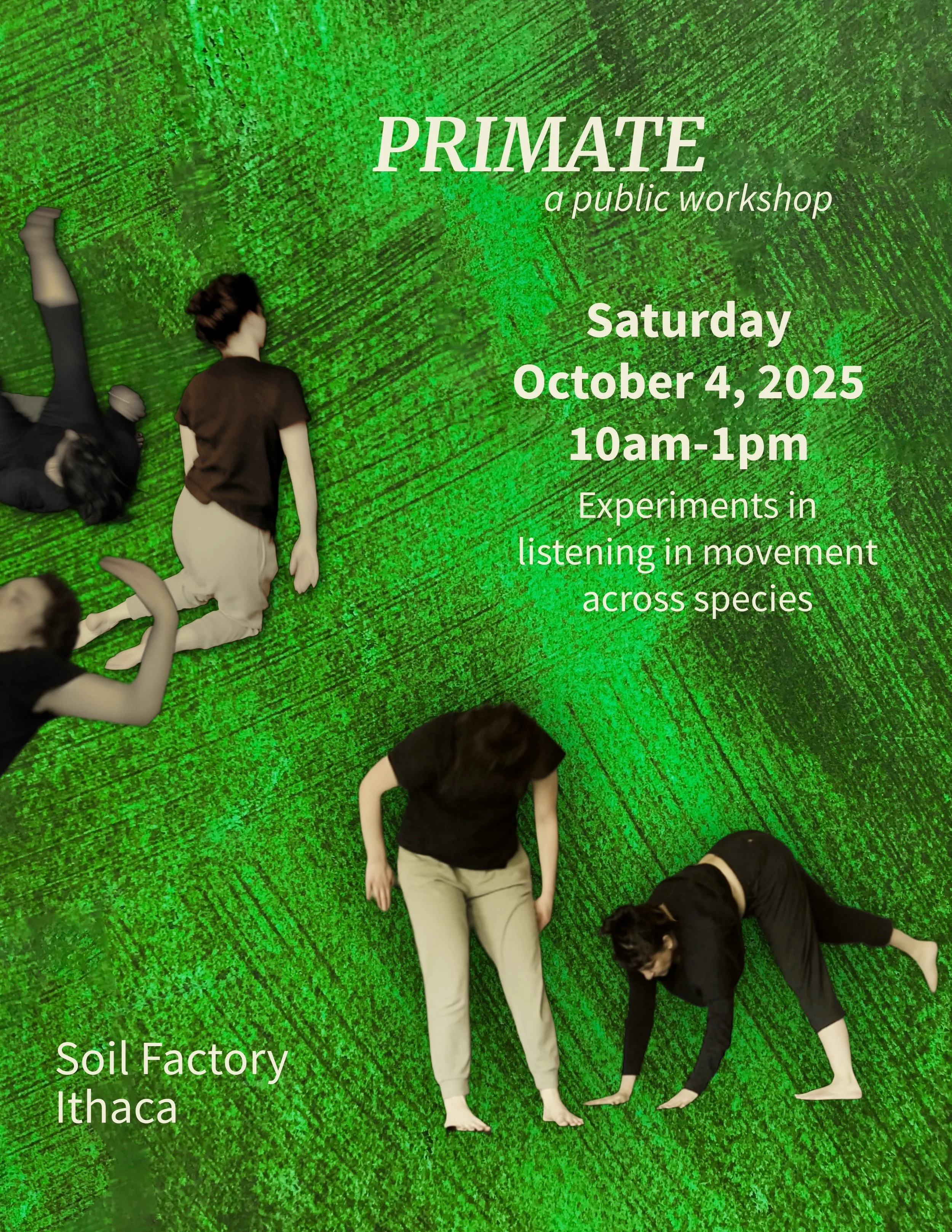 In this workshop we’ll explore ways of listening in movement, to some of our inheritances in form and behavior from across generations. We’ll spend some time, too, in the company of other-than-human primates, appreciating the wider family of creatures to which we belong. Our approach will incorporate multi-sensory materials, movement games and experiments, and selected footage from a field researcher’s video collection. Facilitation by Julie Nathanielsz, with support from Wendy Erb.